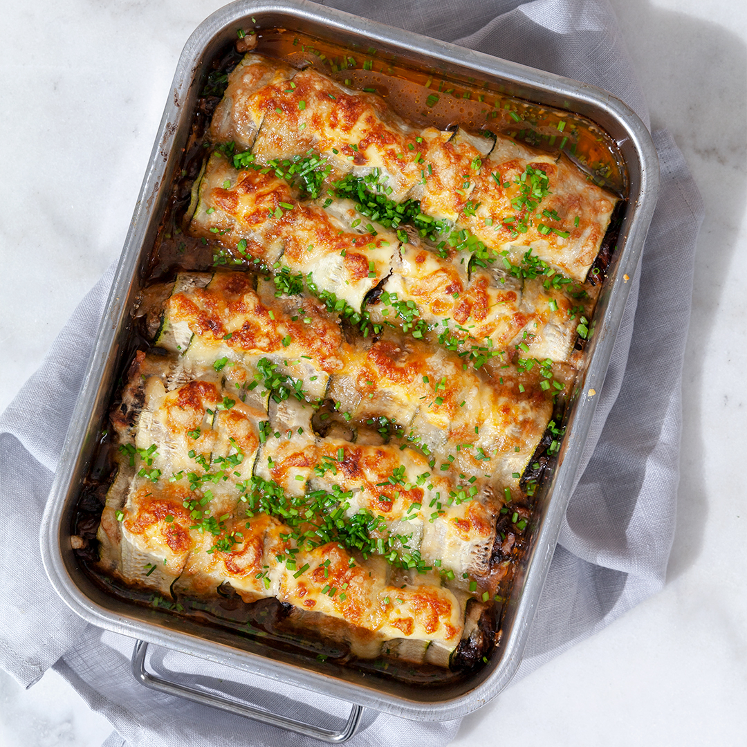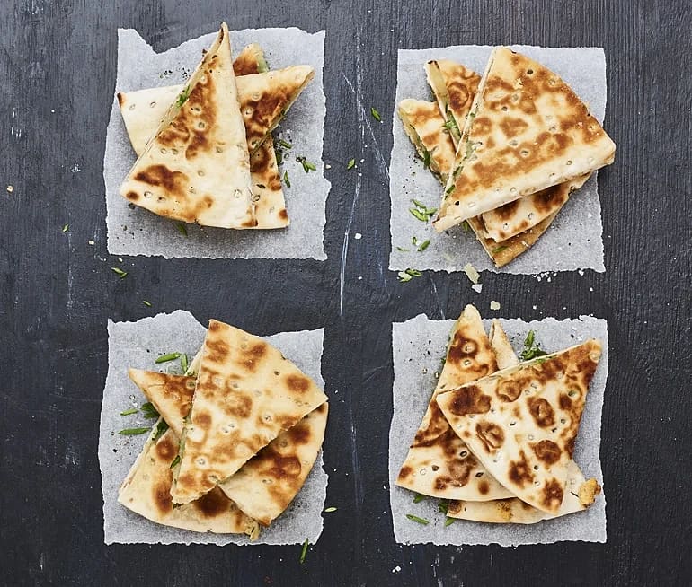 Flintataco med zucchiniyoghurt, aubergine och grillad fetaost
