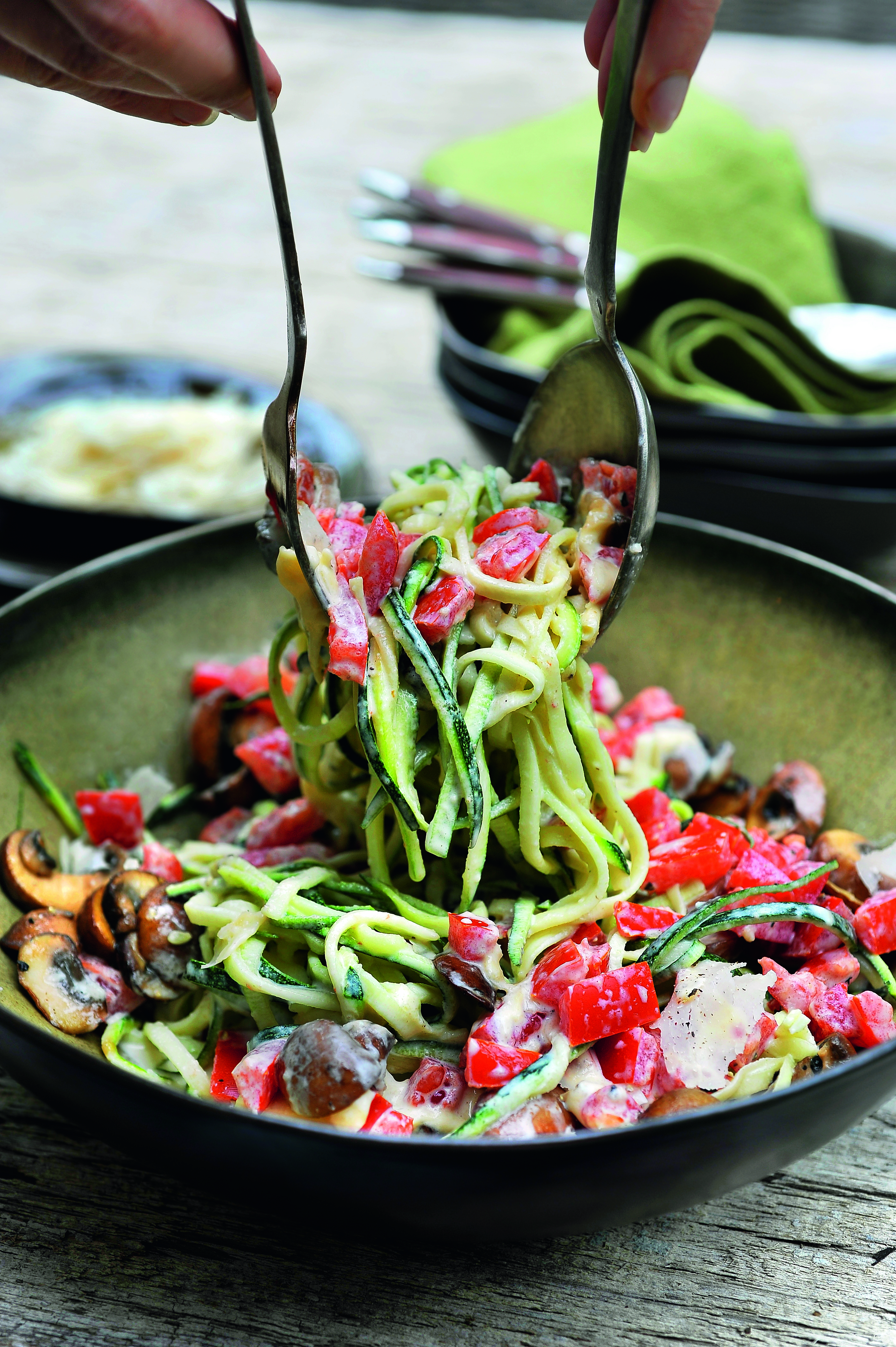 Zucchinipasta med krämig parmesansås
